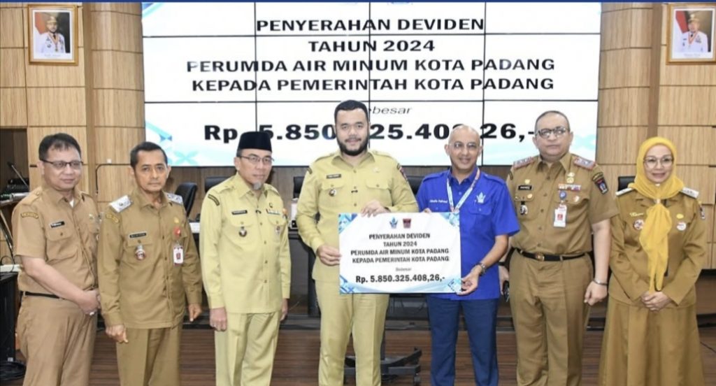 Penyerahan deviden dilakukan secara simbolis oleh Direktur Utama Perumda Air Minum Kota Padang, Hendra Pebrizal, kepada Wali Kota Padang, Fadly Amran, pada Senin (22/9) di Kantor Wali Kota Padang, Aia Pacah.