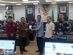 Penyerahan cenderamata sebagai kenang-kenangan dari Unes ke DPRD Provinsi. (Sumber: Dok. Pribadi)