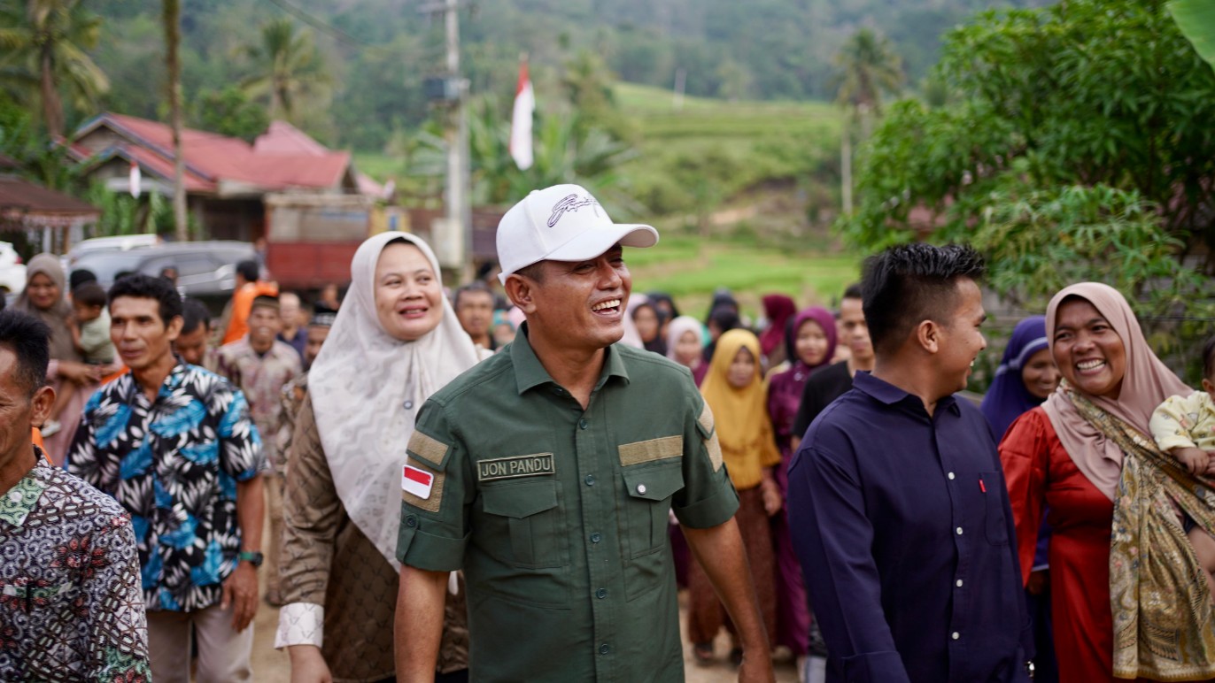 Andalaspos,Tigo Jangko – Bupati Solok, Jon Firman Pandu, bersama Ketua TP-PKK Kabupaten Solok, Ny. Nia Jon Firman Pandu, mengunjungi masyarakat Jorong Tigo Jangko, Nagari Tanjung Balik Sumiso, Sabtu (09/08/2025). Kegiatan yang berlangsung di SDN 12 Tigo Jangko ini turut dihadiri Kepala DPRKPP Retni Humaira beserta jajaran, Kalaksa BPBD Irwan Efendi beserta jajaran, serta Sekcam Tigo Lurah Zulfikar.