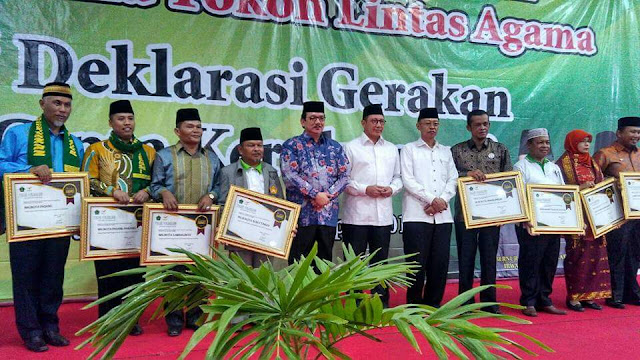 Penghargaan tersebut diserahkan Menteri Agama RI Lukman Hakim Saifuddin dalam Deklarasi Gerakan Cinta Kerukunan Umat Beragama, di Hotel Rocky Plaza Padang, Minggu (2/4). Selain Kota Padang, penghargaan serupa juga diterima Wali Kota Padangpanjang dan Sawahlunto.