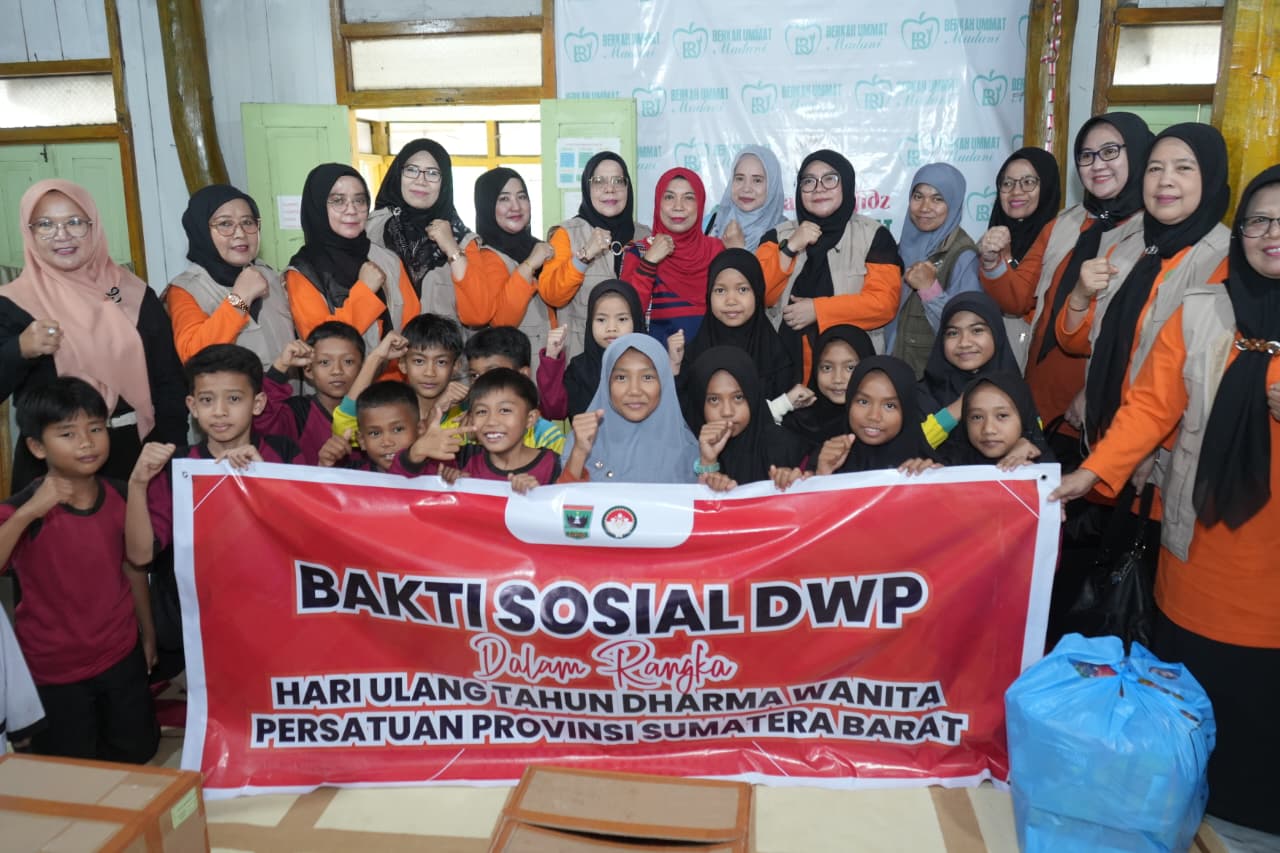 Andalaspos,Tanah Datar — Dharma Wanita Persatuan (DWP) Provinsi Sumatera Barat (Sumbar) menggelar bakti sosial dalam rangka memperingati HUT DWP ke-26 tahun 2025. Kegiatan itu dilaksanakan secara maraton oleh jajaran pengurus dan anggota DWP ke sejumlah rumah tahfiz dan panti sosial di empat daerah di Sumbar, Sabtu (22/11/2025).