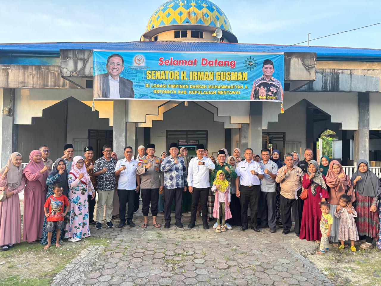 Anggota DPD RI Irman Gusman dan Bupati Rinto foto bersama dengan masyarakat binaan Pimpinan Daerah Muhammadiyah (PDM) Mentawai, Rabu (15/10/2025).