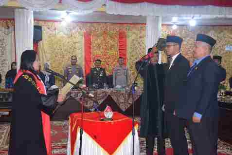 Pengucapan sumpah/Janji Pimpinan Defenitif DPRD Kabupaten Solok dipandu oleh Ketua Pengadilan Negeri Koto Baru Indriani didampingi rohaniawan dari Kantor Kementrian Agama Kabupaten Solok, Zufatmai.
