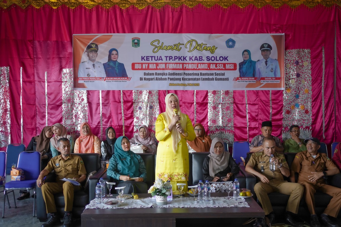 Ketua TP-PKK Kabupaten Solok Hadiri Audiensi Penerima Bansos di Nagari Alahan Panjang
