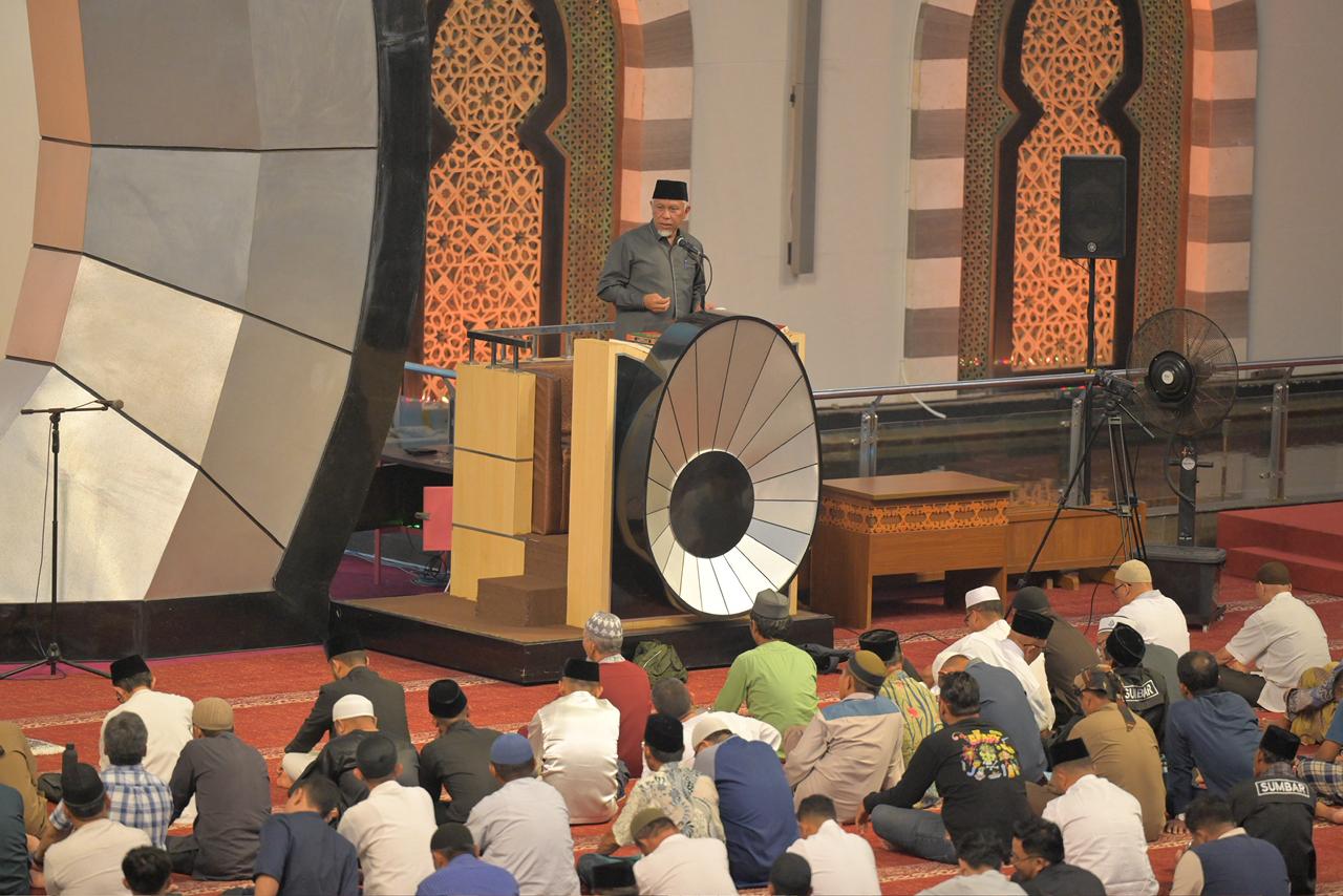 Mahyeldi menyampaikan bulan suci Ramadan bukan sekadar peningkatan ibadah ritual, tetapi juga sarana membangun kualitas diri yang berdampak pada kehidupan sosial. Ketakwaan, menurutnya, harus tercermin dalam sikap sehari-hari.