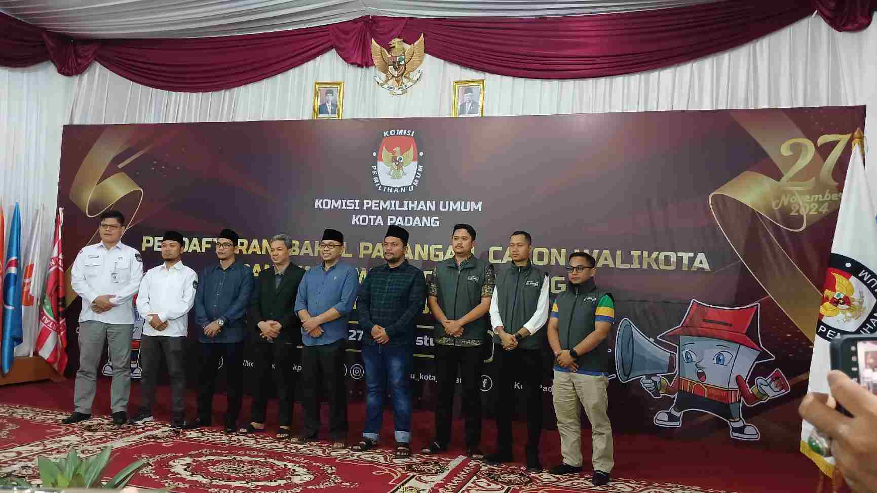 Ketua KPU Kota Padang Dorri Putra, didampingi empat komisioner lainnya Arset Kusnadi, Arianto, Jefri Hariyanto, Randy Adi Tama, dan Sekretaris KPU Padang Agustian, serta dihadiri Ketua Bawaslu Kota Padang Eris Nanda, didampingi Anggota Firdaus Yusri dan Rahmad Ramli,menjelaskan bahwa pada hari pertama pendaftaran, Selasa (27/8/2024), mendaftar ke KPU Kota Padang, pasangan Muhammad Iqbal-Amasrul yang diusung Partai Keadilan Sejahtera (PKS) dan Partai Demokrat.