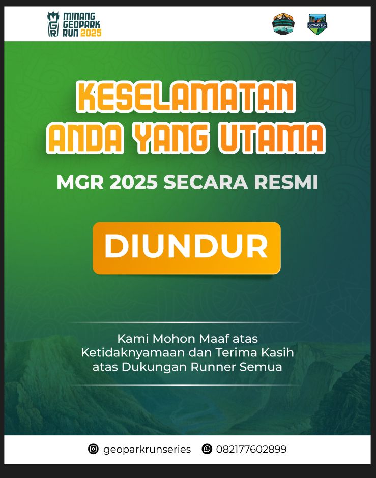 Bagi para pelari yang telah terdaftar di Minang Geopark Run 2025, tetap akan bisa digunakan pada jadwal yang nantinya kita tetapkan.