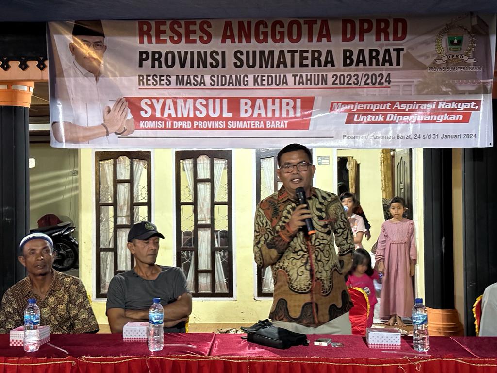 AndalasPos, Pasaman—Masa reses sidang pertama tahun 2024 ini dimanfaatkan oleh beberapa anggota DPRD Provinsi Sumbar untuk melaksanakan kunjungan ke dapil masing-masing. Salah satunya adalah Anggota Komisi II, Syamsul Bahri.