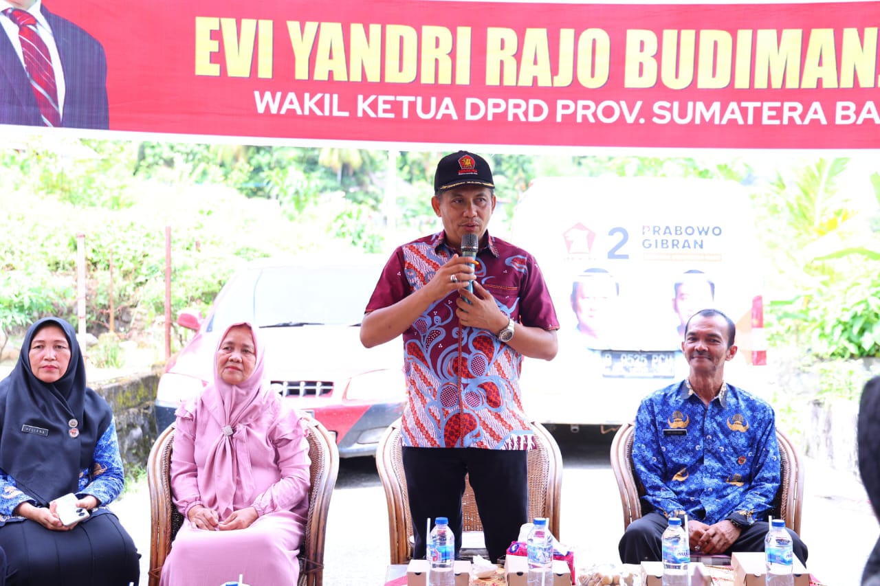 AndalasPos, Padang—Wakil Ketua DPRD Sumatera Barat (Sumbar) Evi Yandri Rajo Budiman kembali temui masyarakat untuk menjemput aspirasi secara langsung dalam rangka kegiatan masa reses.